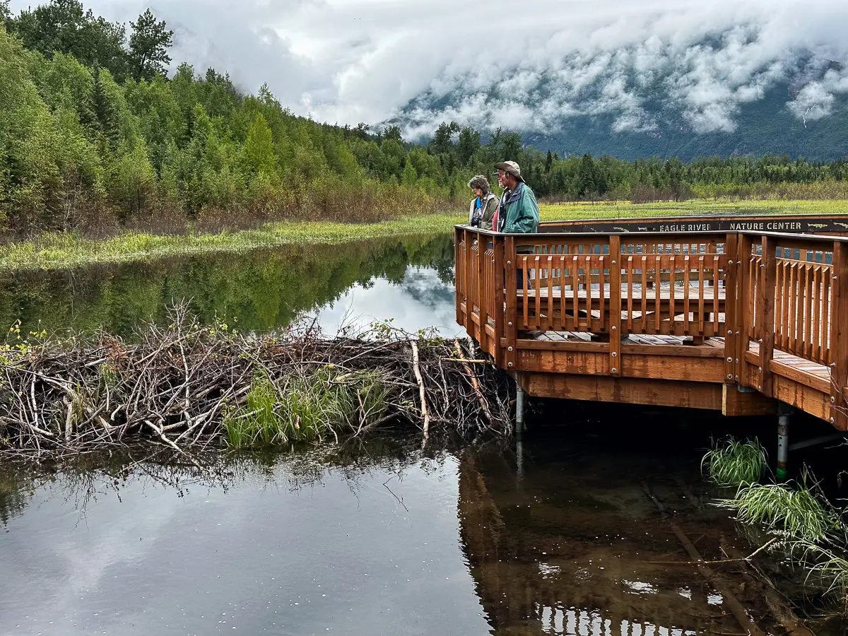 Eagle River Nature Center, nestled within Chugach State Park. Once a private lodge in the 1960s, the building now operates as an educational and recreational hub. It’s run by a non-profit organization that focuses on conservation and nature programs.