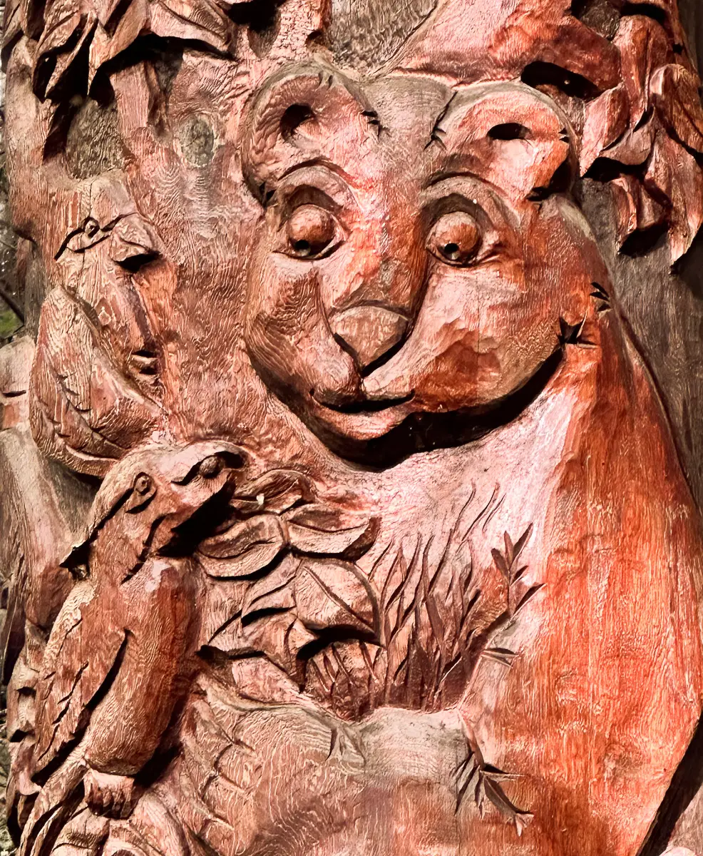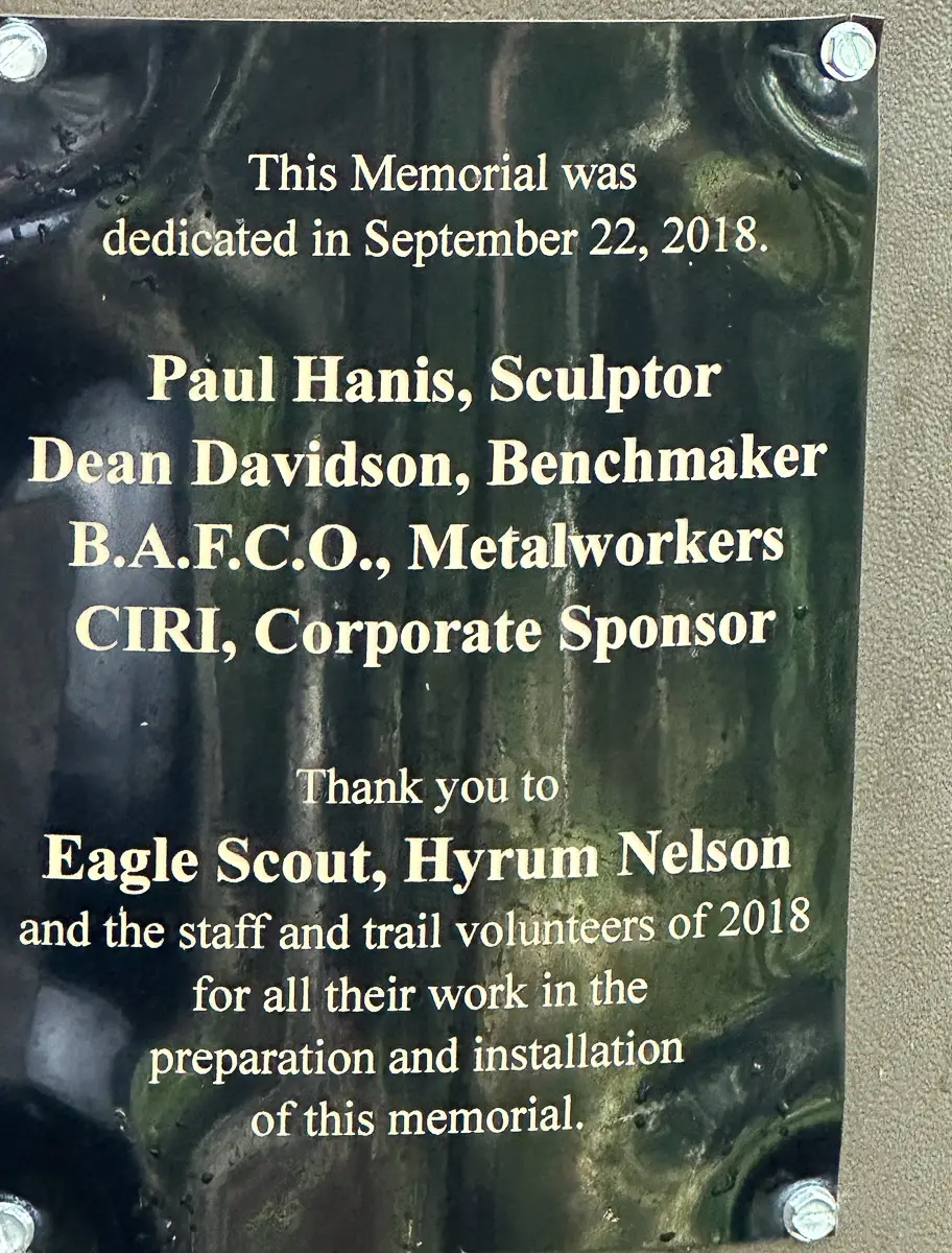 Tucked away in a quiet meditation spot as a Memorial. Paul Hanis is the sculptor. Eagle Scout, Hyrum Nelson and trail volunteer did the preparation and installation.
