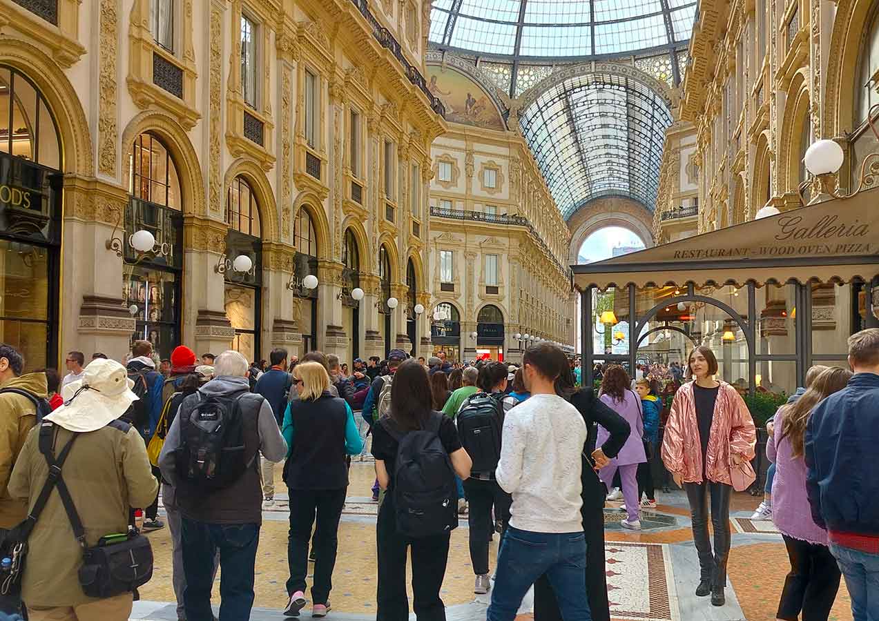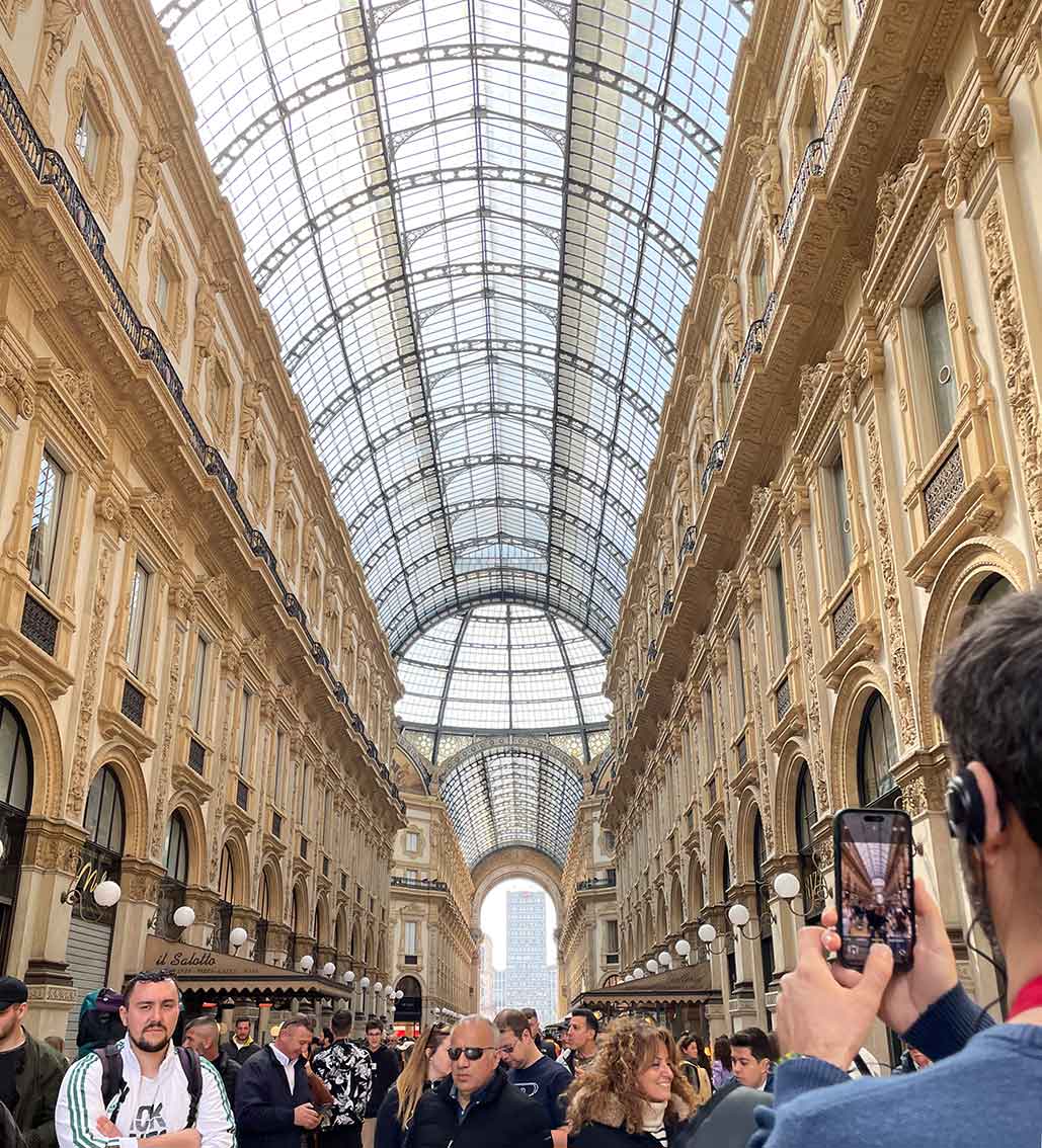 Milan is Italy’s undeniable center of fashion and culture. The sophisticated nucleus at the heart of Milan is a spectacular mall that is beyond description. The gallery features intricate mosaic floors and a magnificent archway into its portico-covered “streets.”