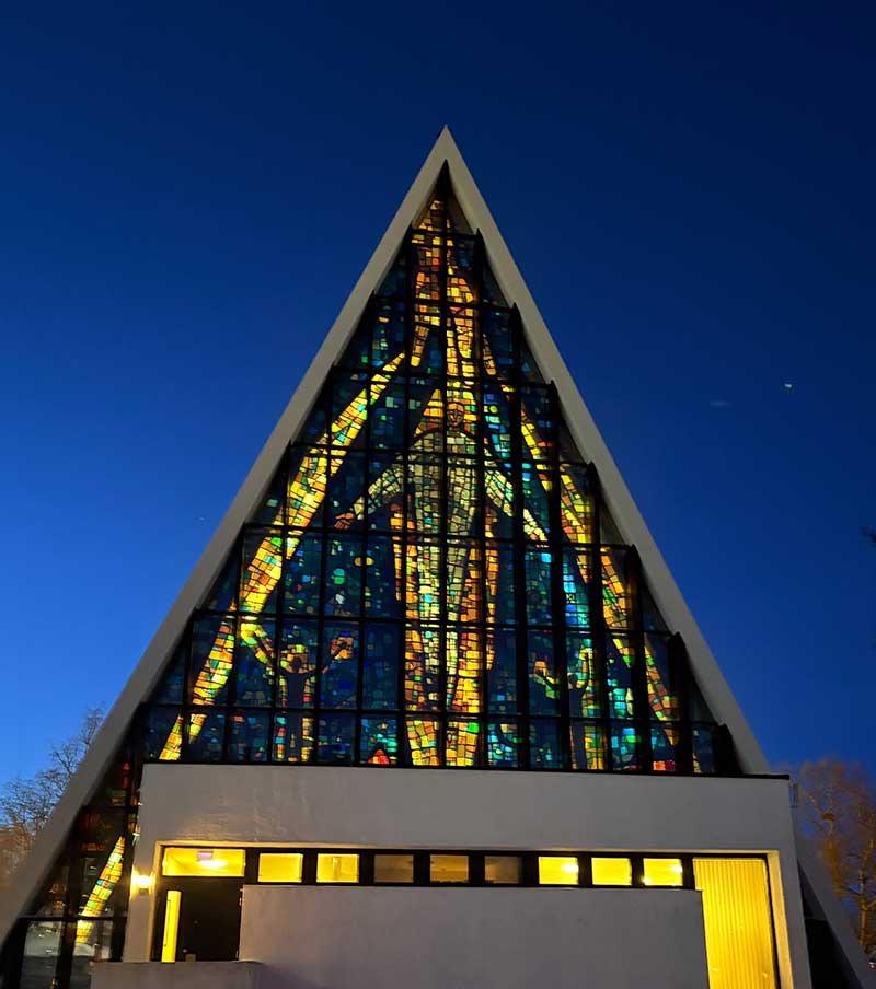 We also make a quick stop at the Arctic Cathedral with its glass mosaic windows inspired by nature to let in as much light as possible.
