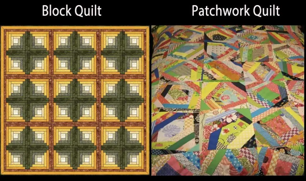 The overall quilt pattern can be as organized as a Block Quilt or it can appear wildly unpredictable as a Patchwork Quilt.